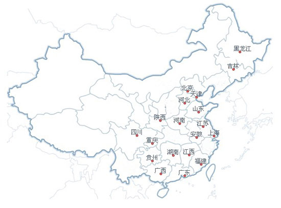 北京、天津、鄭州、青島、西安、重慶、成都、長沙、南京、 南寧、哈爾濱、 廣州、石家莊等。